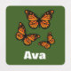 Monarch Butterfly Design - Personalise Name Small Square Forest Green Clothing Label (0.75" x 0.75")