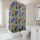 This shower curtain features a beautiful scene of a monarch butterfly gathering nectar from a purple butterfly bush.