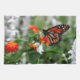 An original fine art photograph by Shelley Neff Design and Photography featuring a monarch butterfly (Danaus plexippus) that is a milkweed butterfly (subfamily Danainae) in the family Nymphalidae sipping nectar from a brilliant orange and red-coloured Lantana. Considered an iconic pollinator species and is also known as milkweed, common tiger, wanderer, and black veined brown butterfly. Its wings feature an easily recognisable black, orange, and white pattern. The eastern North American monarch population is noteable for its annual southward late-summer/autumn migration from the United States and southern Canada to Mexico. During the fall migration, monarchs cover thousands of miles, with a corresponding multi-generational return north. The western North American population of monarchs west of the Rocky Mountains often migrates to sites in California but has been found in overwintering Mexican sites as well. Monarchs were transported to the International Space Station and were bred there. Sadly, after a ten-fold drop in the population of the eastern monarch butterfly population over the last decade, a 2016 study predicted an 11%–57% probability that this population will go extinct over the next 20 years. Makes the perfect gift for any butterfly conservationist or nature enthusiast. Looks perfect on any product but especially business cards, postcards, posters, greeting cards, postage stamps, air fresheners, bath mats, door mats, plates, napkins, trivets, stickers, tiles, buttons, magnets, photographic or canvas prints and can be personalised by adding your name or other text by choosing 'Customise It'. Please contact us directly if you need assistance with customisation or would like to see this image on a different product. To see all other products in our store matching this design go to http://www.zazzle.com/sneffygirl* and click on the ‘Butterflies > Monarch Butterfly on Orange and Red Lantana’ category. Thanks for your interest!