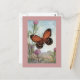 Postcard with a vintage image of a Monarch butterfly on purple clover