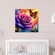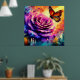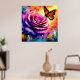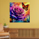 Monarch Butterfly on Purple Rose at Sunset Floral Poster