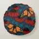 Monarch butterfly on red coneflowers round cushion