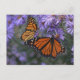 This post card features two monarch butterflies gathering nectar from a purple aster bush.