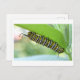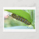 This postcard features a close-up photo of a monarch caterpillar crawling on common milkweed. Photo by Jim Hudgins of USFWS.