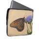 This butterfly laptop sleeve features a bright orange and black monarch butterfly resting on a purple flower. The peach-colored background compliments the delicate orange wings of this beautiful insect.