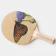 This butterfly ping pong paddle features a bright orange and black monarch butterfly resting on a purple flower. The peach-coloured background compliments the delicate orange wings of this beautiful insect.