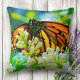 A close-up photo of a delicate, orange monarch butterfly on a white blossom. Feel the sunshine of a warm, sunny day whenever you use this stunning, colourful photography throw pillow. Makes a great gift for someone special!