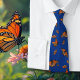 Butterfly pattern tie. Pretty orange monarch butterflies cover this dark, navy blue neck tie.