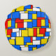 Mondrian Inspired Style Red Blue Yellow Pattern Round Cushion