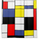 Mondrian, minimalist.. primary colours of red white blue yellow and black.