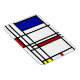 Mondrian Modern Art has a section like Composition 10 by Pieter Piet Mondrian in red , blue , yellow , black and white , the most well know of the De Stijl art movement group that used three primary colours with black lines on a white background