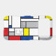 This simple design features modern and graphic colour blocks, bold black lines and bright colours with retro circles pattern. It is inspired by Piet Mondrian's abstract works and movement.