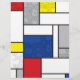 Mondrian Minimalist De Stijl Modern Art Retro Circles in Red. Blue, Yellow And Grey Colour Blocks Design.