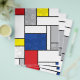 This simple design features modern and graphic colour blocks, bold black lines and bright colours with retro circles pattern. It is inspired by Piet Mondrian's abstract works and movement.