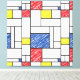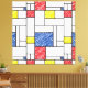 This simple design features modern and graphic colour blocks, bold black lines and bright primary colours in freestyle sketched scribbles. It is inspired by Piet Mondrian's abstract works and movement.