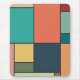 A minimalist Mondrian style abstract art design of geometric shapes in retro tones of blue, peach, green and red colors.
