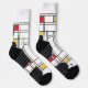 Walk in the footsteps of a modern master with these striking Piet Mondrian-inspired socks. Showcasing the iconic De Stijl art movement, these socks feature a bold geometric grid pattern with vibrant blocks of primary red and yellow. Set against a clean white background with a contrasting black heel and toe, these socks are a true piece of wearable art. Perfect for art lovers, designers, and anyone looking to add a touch of abstract, modernist flair to their wardrobe. Comfortable, stylish, and undeniably unique.