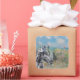 Beautiful and unique artwork features Monet's Cliff Walk at Pourville as a background to a watercolor black horse with floral crown portrait overlay.