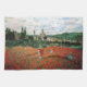 Monet Field of Red Poppies kitchen towel. Oil on canvas from 1879. Monet painted several different poppy fields during his career. This particular painting features several young women in sundresses and sunhats collecting the red flowers before a river on a slightly cloudy summer day. A pretty gift for fans of Monet, Impressionism, Red Poppies, and flower art.