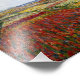 Monet Field of Tulips with Windmill print. Oil painting on canvas from 1886. One of Monet’s most colourful works painted around the Rijnsburg Windmill. The tulip fields are bursting with reds, whites, yellows and greens. A beautiful landscape painting that makes a great gift for fans of Claude Monet, tulips, impressionism, windmills, and French art.