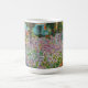 Monet Irises mug. Oil painting on canvas from 1900. Along with his famous water lilies, Monet frequently repainted the purple irises in his garden at Giverny. The soft use of purple flows nicely along the garden path with trees in the background. A great gift for fans of Monet, impressionism, irises and French art.