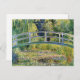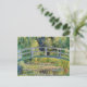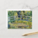 Monet Japanese Bridge with Water Lilies postcard. Oil painting on canvas from 1899. Monet painted the Japanese style bridge above his water lily pond at Giverny multiple times throughout his long career. This is one of the most famous of Monet’s Japanese Bridge paintings. The work features the bridge at mid morning with the sun streaming down upon the light green lily pads and pink lily flowers blooming in the pond below. The bridge itself is soft green and blue. A pretty gift for fans of Claude Monet, Impressionism, and French Landscape paintings.