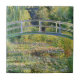 Monet Japanese Bridge with Water Lilies tile. Oil painting on canvas from 1899. Monet painted the Japanese style bridge above his water lily pond at Giverny multiple times throughout his long career. This is one of the most famous of Monet’s Japanese Bridge paintings. The work features the bridge at mid morning with the sun streaming down upon the light green lily pads and pink lily flowers blooming in the pond below. The bridge itself is soft green and blue. A pretty gift for fans of Claude Monet, Impressionism, and French Landscape paintings.
