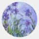 Monet Lilac Irises stickers. Oil painting on canvas from 1917. Monet painted irises throughout his career, this is one of his final iris paintings and certainly one of his most haunting. The work is heavily impressionistic and the dark purple irises almost seem to be floating in water above their dark green foliage, the sky above is soft blue and purple. A beautiful gift for fans of Claude Monet, Impressionism, iris paintings and French art.