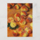 Monet Peaches postcard. Oil painting on canvas from 1883. One of the most popular peach paintings of all time, Monet’s 1883 still life deliciously captures the rich orange and yellows of summer peaches. A great gift for fans of Claude Monet, impressionism, peaches, and French art.