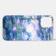 A Monet pink water lilies iPhone 12 case featuring beautiful pink water lilies floating in a calm blue pond with lily pads. A great Monet gift for fans of impressionism and French art. Serene nature impressionism with lovely flowers and scenic pond landscape iPhone 12 case.
