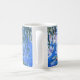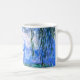 A Monet pink water lilies coffee mug featuring beautiful pink water lilies floating in a calm blue pond with lily pads. A great Monet gift for fans of impressionism and French art. Serene nature impressionism with lovely flowers and scenic pond landscape.