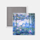 A Monet pink water lilies magnet featuring beautiful pink water lilies floating in a calm blue pond with lily pads. A great Monet gift for fans of impressionism and French art. Serene nature impressionism with lovely flowers and scenic pond landscape.