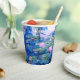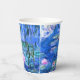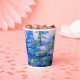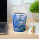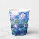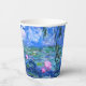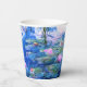 Paper Cups featuring beautiful pink water lilies floating in a calm blue pond with lily pads. A great Monet gift for fans of impressionism and French art. Serene nature impressionism with lovely flowers and scenic pond landscape.