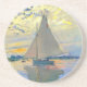 Sandstone Coaster featuring Claude Monet’s oil painting Sailboat at Le Petit-Gennevilliers (1874). A serene sailboat sails the waters in Paris, France. Perfect for lovers of Impressionism and French art collectors!