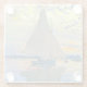 Glass Coaster featuring Claude Monet’s oil painting Sailboat at Le Petit-Gennevilliers (1874). A serene sailboat sails the waters in Paris, France. Perfect for lovers of Impressionism and French art collectors!
