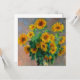 Card featuring Claude Monet’s oil painting Bouquet of Sunflowers (1881). Beautiful sunflowers in a blue vase atop a red table. A great gift for fans of impressionism and French art.