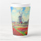 Latte Mug featuring Claude Monet’s flower and windmill painting. Beautiful and colourful fields of red, pink, and yellow tulips next to a windmill and house in Holland. A great Monet gift for fans of impressionism and French art.