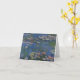 French Impressionist painter, Claude Monet painted this Water Lilies --- 1916, originally as an oil on canvas painting from the inspirations of his own backyard in early 20th Century France. Being 76 years of age when he painted this water lily pond creation, Monet's cataracts were progressing and changing his perception of colour. The worse his cataracts became, the more reds, purples, dark blues he put into his paintings. The darker blue of these two renditions is more likely closer to the original art, though the yellow hues version is most pleasing with its bright contrast and rich lighter tones.
