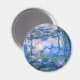 Monet Water Lilies magnet. Oil painting on canvas from 1916. Monet painted his famous water lily pond obsessively during the final years of his career, drawing inspiration from the light of the sun and its shifting effect on the water and the aquatic flowers and foliage. This painting features a vibrant use of pinks, blues and purples and makes a great gift for fans of Claude Monet, impressionism, flower paintings, and French art.