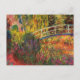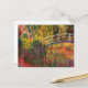 Postcard featuring Claude Monet’s oil painting of a Japanese bridge and beautiful flowers. Water lily pond and water irises bathed in pink light. Serene nature impressionism with lovely flowers and scenic pond landscape. A great Monet gift for fans of impressionism and French art.