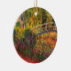 Ornament featuring Claude Monet’s oil painting of a Japanese bridge and beautiful flowers. Water lily pond and water irises bathed in pink light. Serene nature impressionism with lovely flowers and scenic pond landscape. A great Monet gift for fans of impressionism and French art.