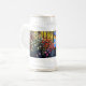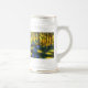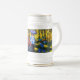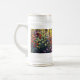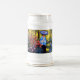 Beer Stein featuring Claude Monet’s oil painting Woman with a Parasol in the Garden in Argenteuil (1875). Camille, Monet’s wife, holds a blue parasol in a garden of beautiful red, pink, and white flowers. Serene nature landscape. A great Monet gift for fans of impressionism and French art.