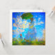A family portrait invitation featuring Claude Monet’s wife, Camille, holding a parasol, and their son, Jean, taking a walk in a vibrant green field being blown by the wind on a summer’s day. A great Monet gift for fans of impressionism and French art.