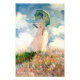 Monet Woman with a Parasol print. Tempera on Canvas from 1886. One of French Impressionist Claude Monet’s most striking studies, Woman with a Parasol features a beautiful woman standing in a white dress with red corsage holding a green parasol as her blue scarf blows in the hot summer breeze. The girl stands on a grassy windswept hill with her skirt blowing in the wind as the clouds pass brightly behind her. A pretty art gift for fans of Claude Monet, Impressionism, and French art.