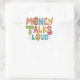 This eye-catching t-shirt design features the phrase "Money Talks Loud" in a vibrant multicolor scheme. Each word is a different bold colour, making a statement and grabbing attention.