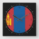Square Wall Clock with flag of republic of Mongolia with red and blue flag with yellow national emblem