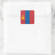 The Mongolian flag has three vertical stripes in red and blue. On the left of the flag is the national Soyombo symbol in yellow. The current version of this flag was adopted in 1992, and it has a 1:2 ratio.