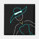 A fun outline drawing of a sassy young woman out in a fashionable blue hat and dress. Makes for a unique magnet and a great gift for those with a love for fashion and high society.
