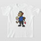 The t-shirt feels and looks great quality, a good thick cotton. It will be a little big for my son, but that means he will be able to wear it and not out grow it too soon. The print was as described on the order when personalised. True size, shape and colour T-shirt- thanks.