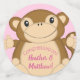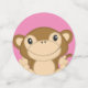 Adorable monkey cartoon baby shower design is great for a jungle theme! Perfect in pink for a new baby girl on the way!